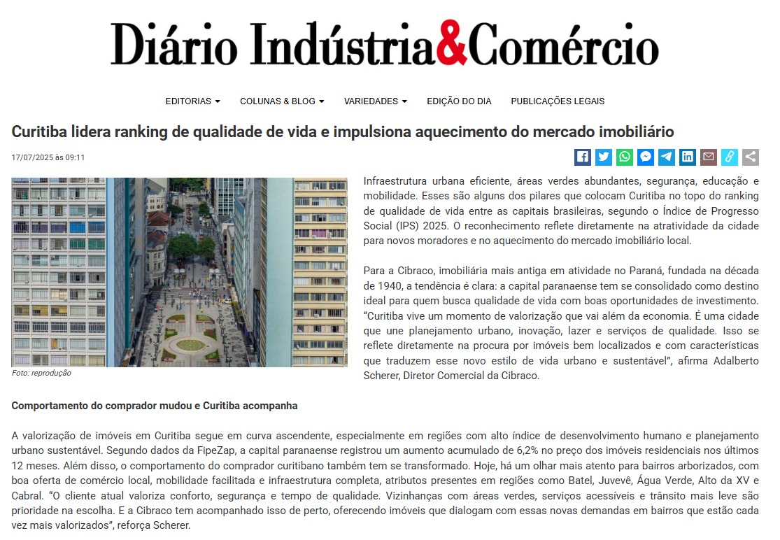 Área nobre, disputada e valorizada, o Cabral é dominado por grandes empreendimentos de incorporadoras renomadas, reconhecidas pelo alto padrão e solidez no mercado.